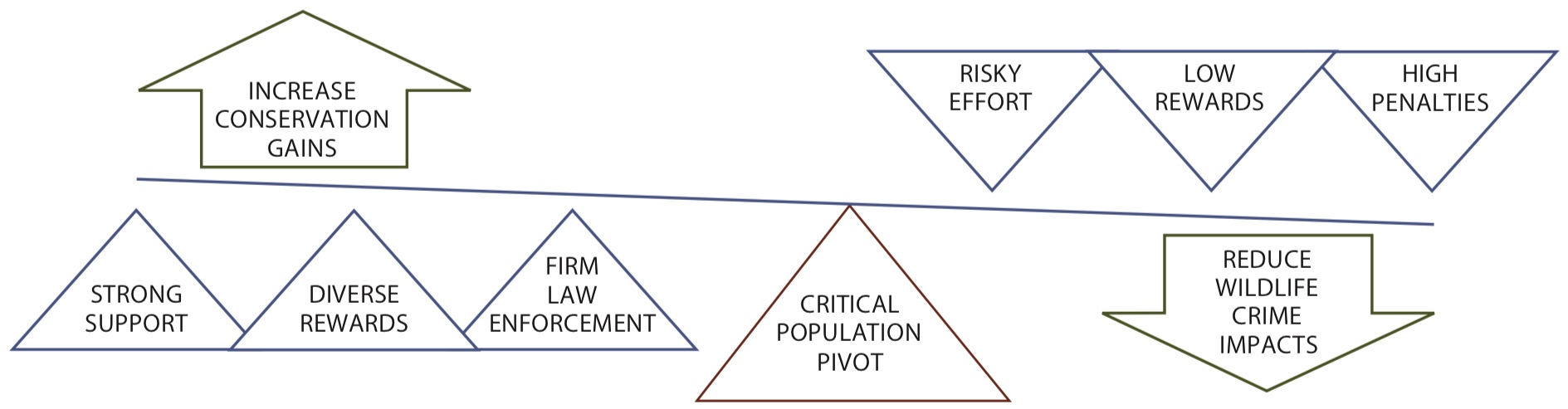 When government, NGOs, the private sector and civil society work together at local, regional and global levels to enforce the law, wildlife crime becomes risky to the point of dissuading criminals and impacts can be reduced to levels that no longer threaten species.